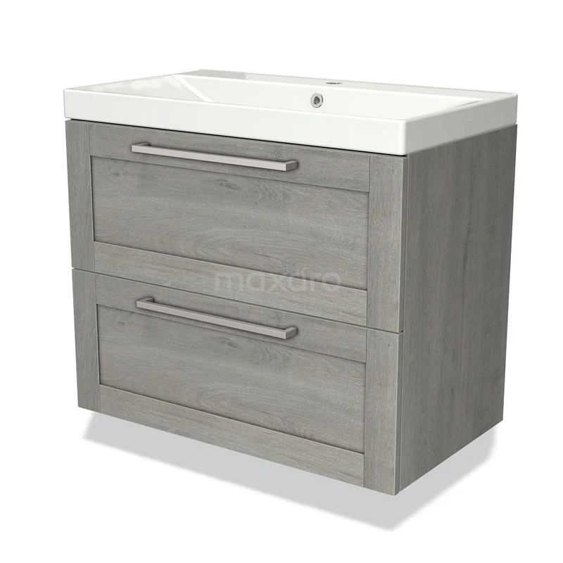 Modulo Bathroom furniture with sink | 80 cm Grey oak Frame front Ceramic 2 Stacked drawers