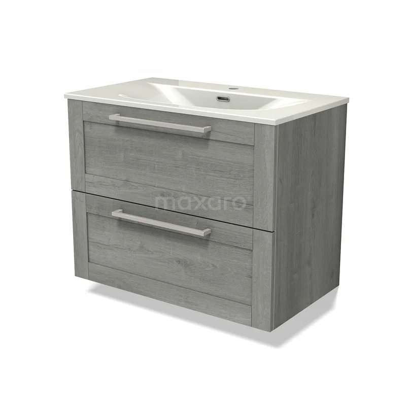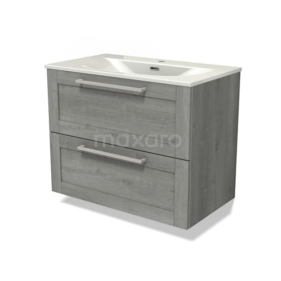 Modulo Bathroom furniture with sink | 80 cm Grey oak Frame front Ceramic 2 Stacked drawers
