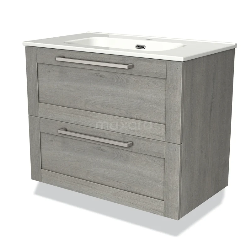 Modulo Bathroom furniture with sink | 80 cm Grey oak Frame front Ceramic 2 Stacked drawers