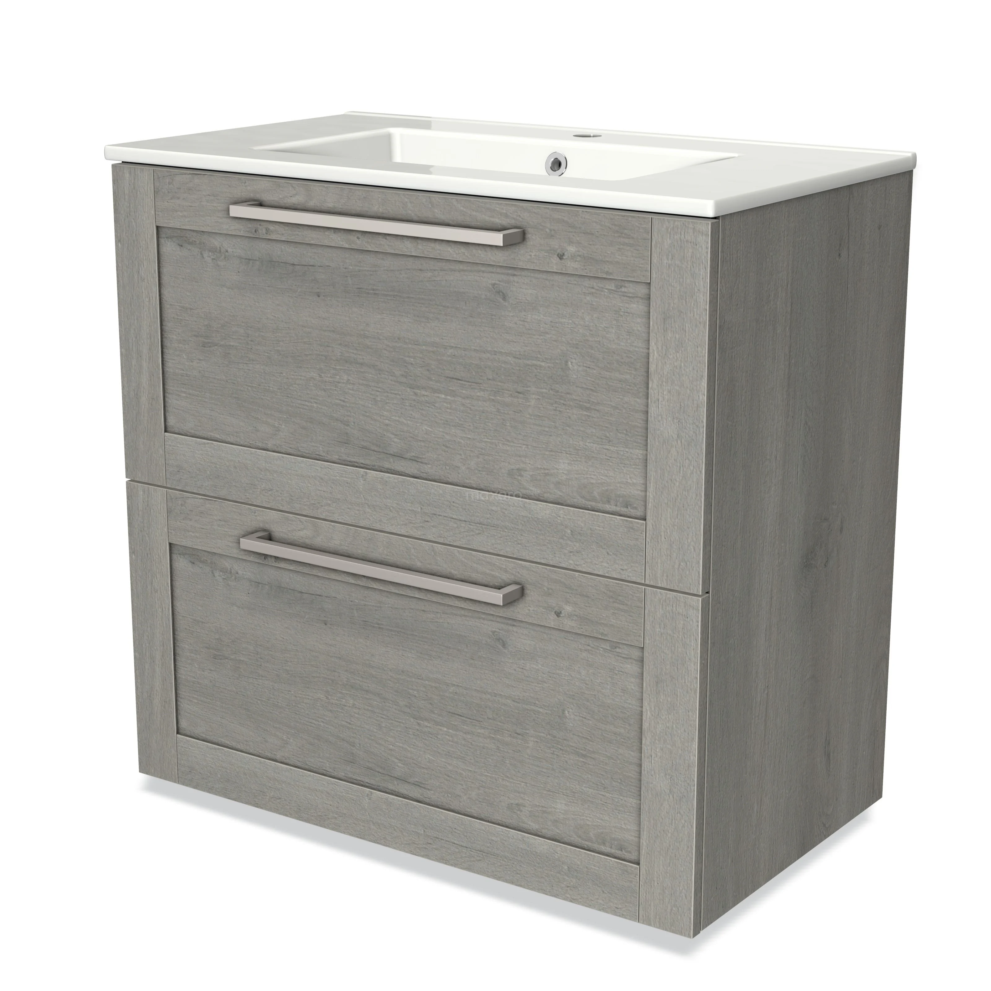 Modulo Bathroom furniture with sink | 80 cm Grey oak Frame front Ceramic 2 stacked drawers under each other