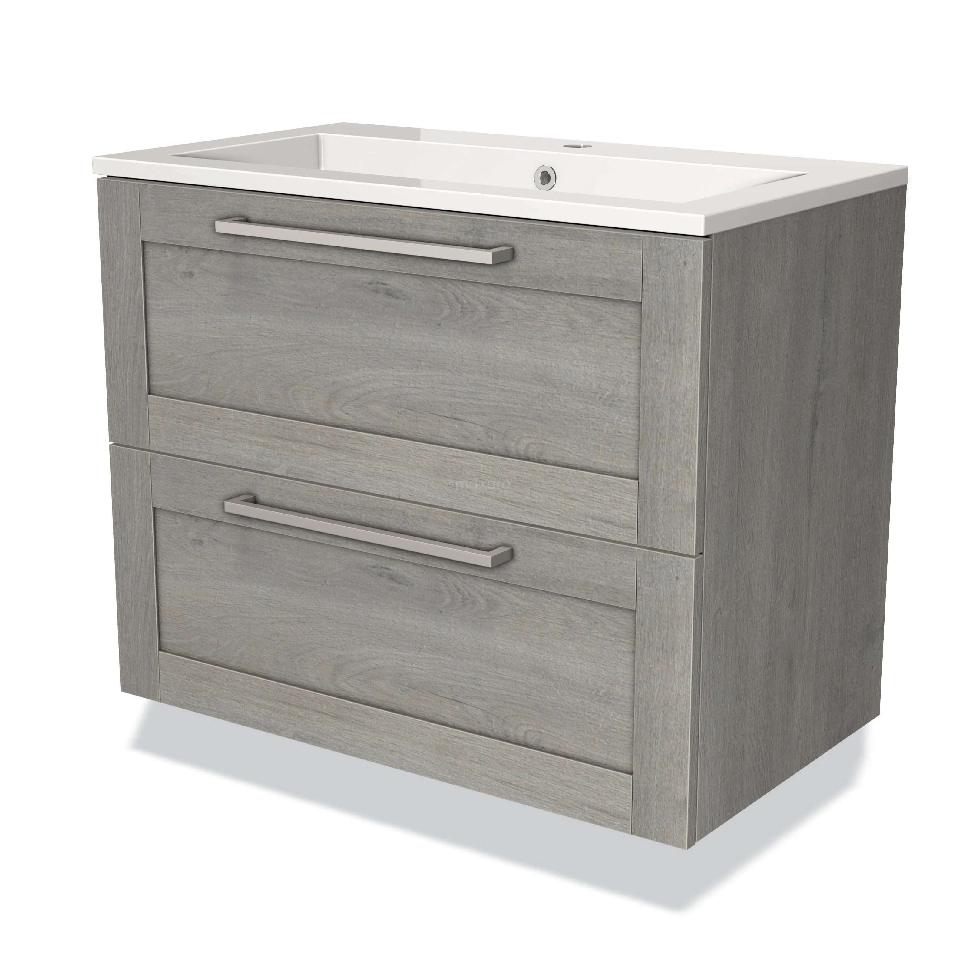 Stylish design The stylish design makes this bathroom unit the eye-catcher of your bathroom. The base cabinet features a framed front and has a grey oak finish. This beautiful oak look is an attractive addition to your bathroom interior. In addition, the framed front adds a classic touch. You will need to joint the handles yourself. These are available in different colours and shapes.