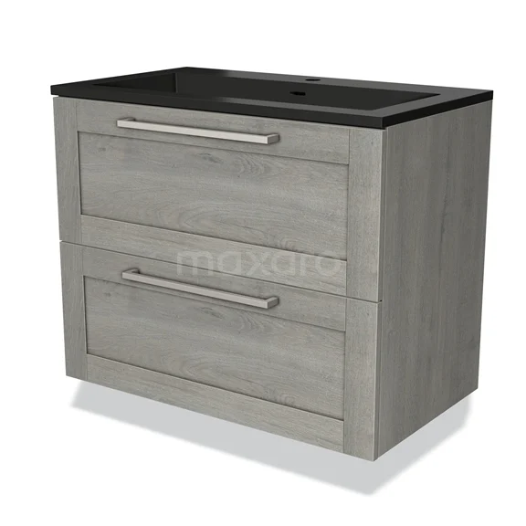 Modulo Bathroom furniture with sink | 80 cm Grey oak Frame front Quartz 2 Stacked drawers