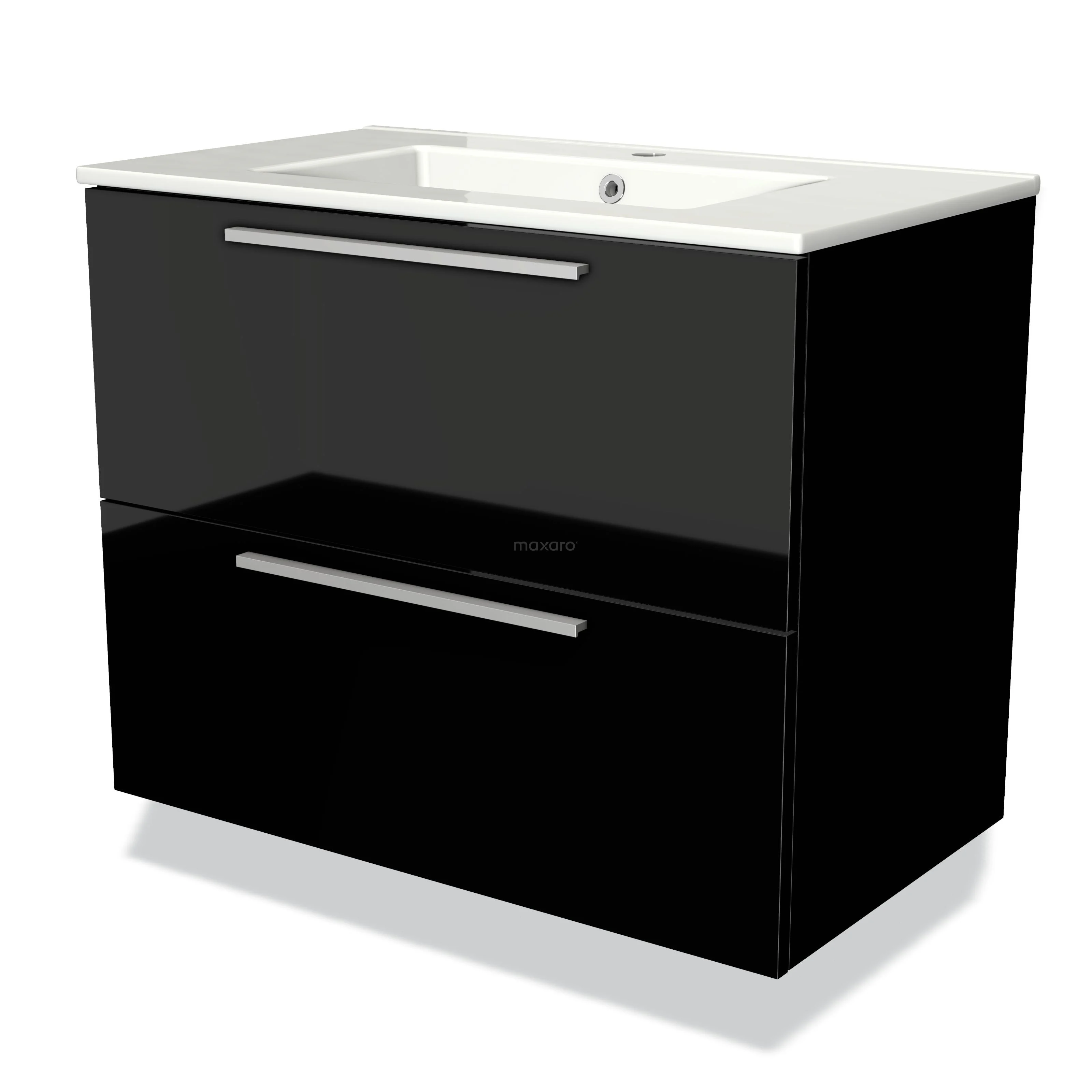 Modulo Bathroom furniture with sink | 80 cm High-gloss black Flat front Ceramic 2 Stacked drawers