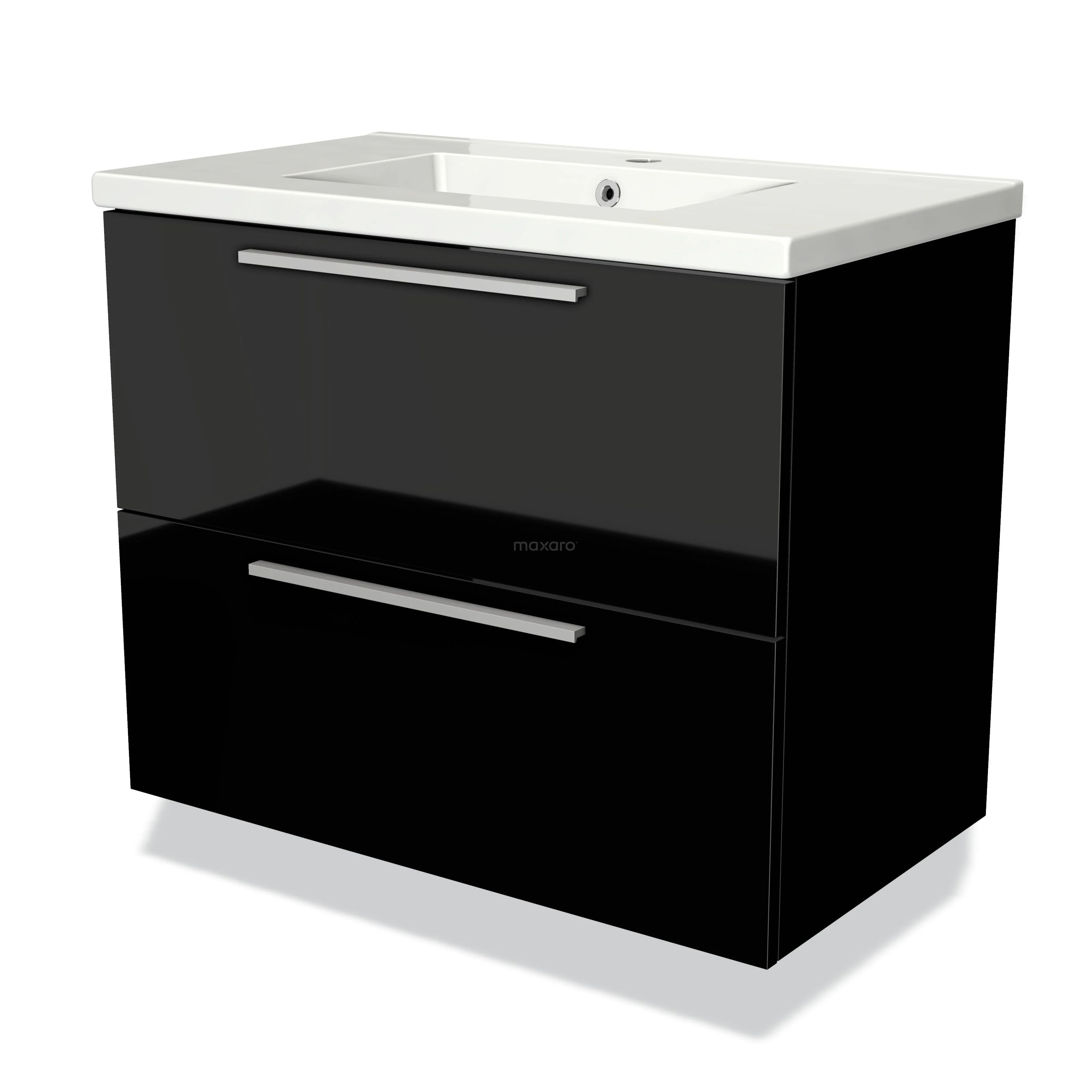 Modulo Bathroom furniture with sink | 80 cm High-gloss black Flat front Ceramic 2 Stacked drawers