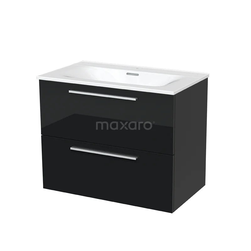 Modulo Bathroom furniture with sink | 80 cm High-gloss black Flat front Ceramic 2 Stacked drawers