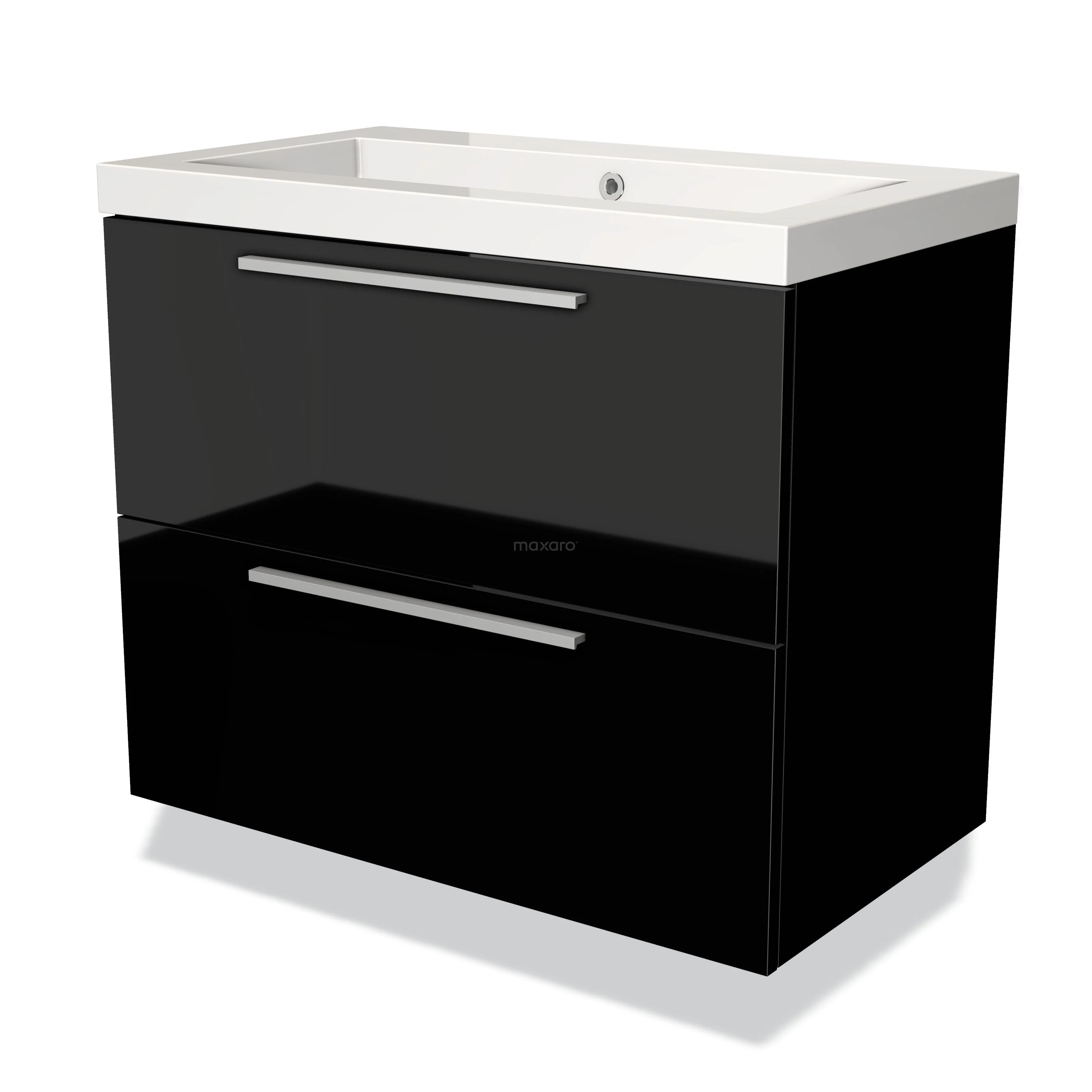 Modulo Bathroom furniture with sink | 80 cm High-gloss black Flat front Mineral marble 2 Stacked drawers