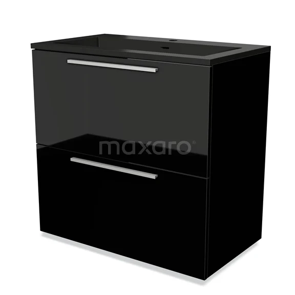 Modulo Bathroom furniture with sink | 80 cm High-gloss black Flat front Quartz 2 stacked drawers under each other
