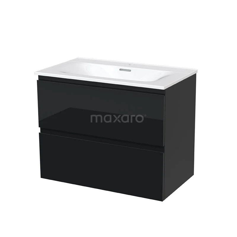 Modulo Bathroom furniture with sink | 80 cm High-gloss black Handle-less front Ceramic 2 Stacked drawers