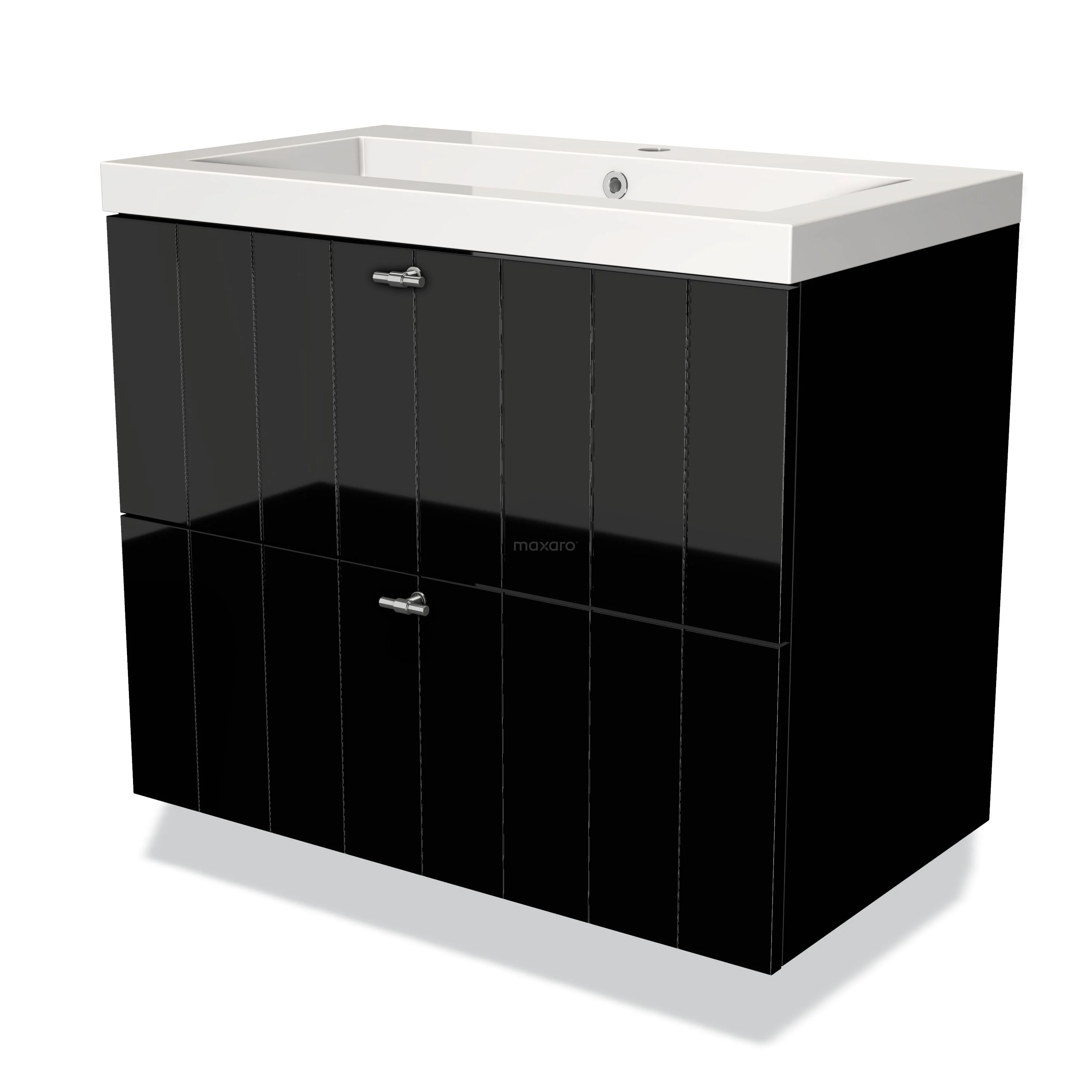 Modulo Bathroom furniture with sink | 80 cm High-gloss black Slat front Mineral marble 2 Stacked drawers