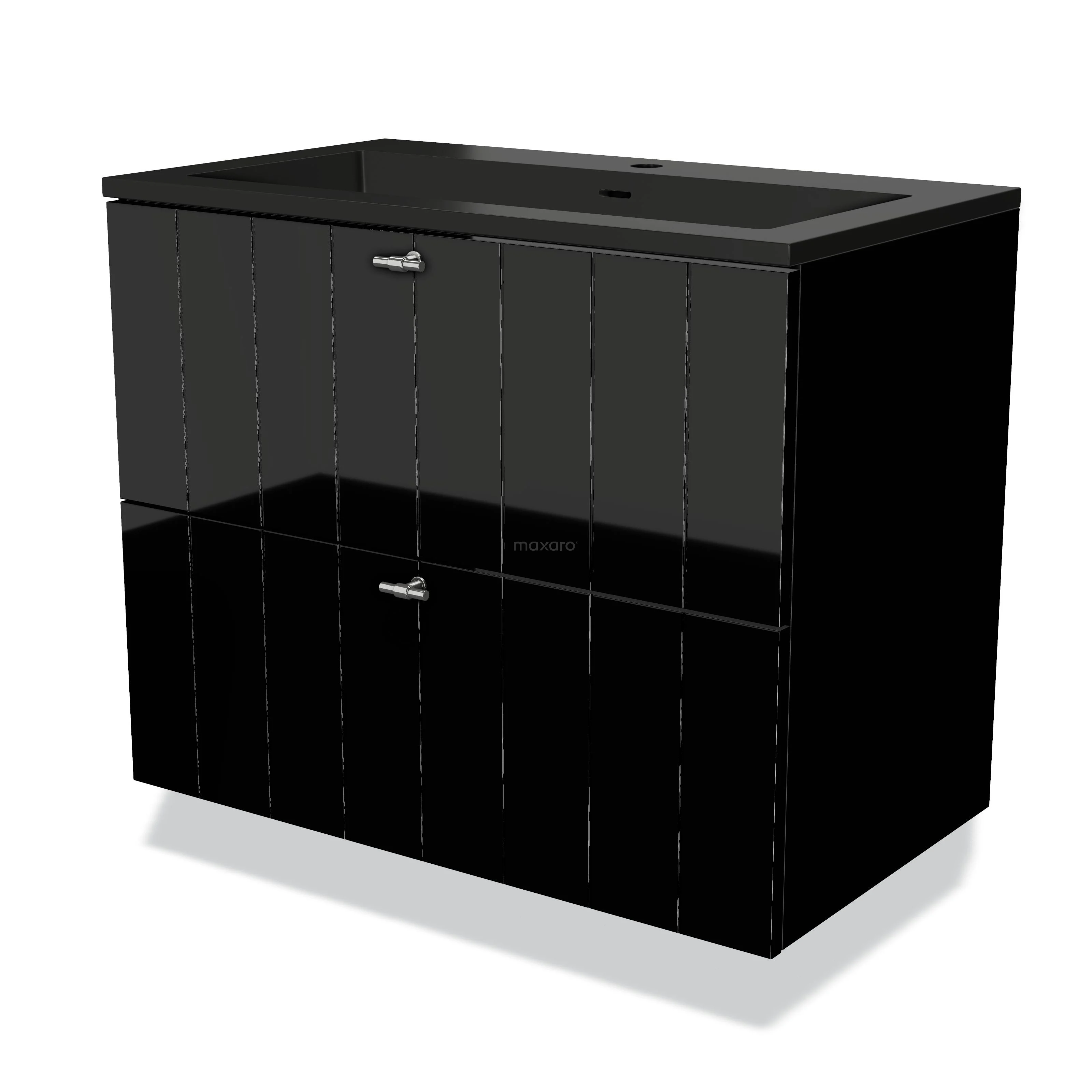 Modulo Bathroom furniture with sink | 80 cm High-gloss black Slat front Quartz 2 Stacked drawers