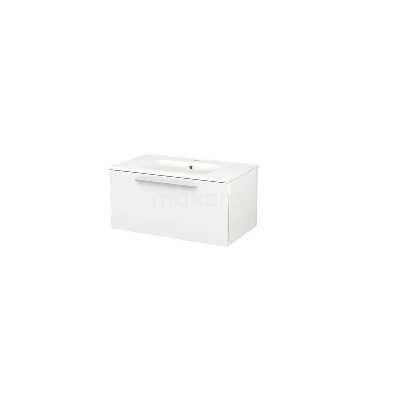 Modulo+ Bathroom furniture with sink | 80 cm High-gloss white Flat front Ceramic 1 drawer