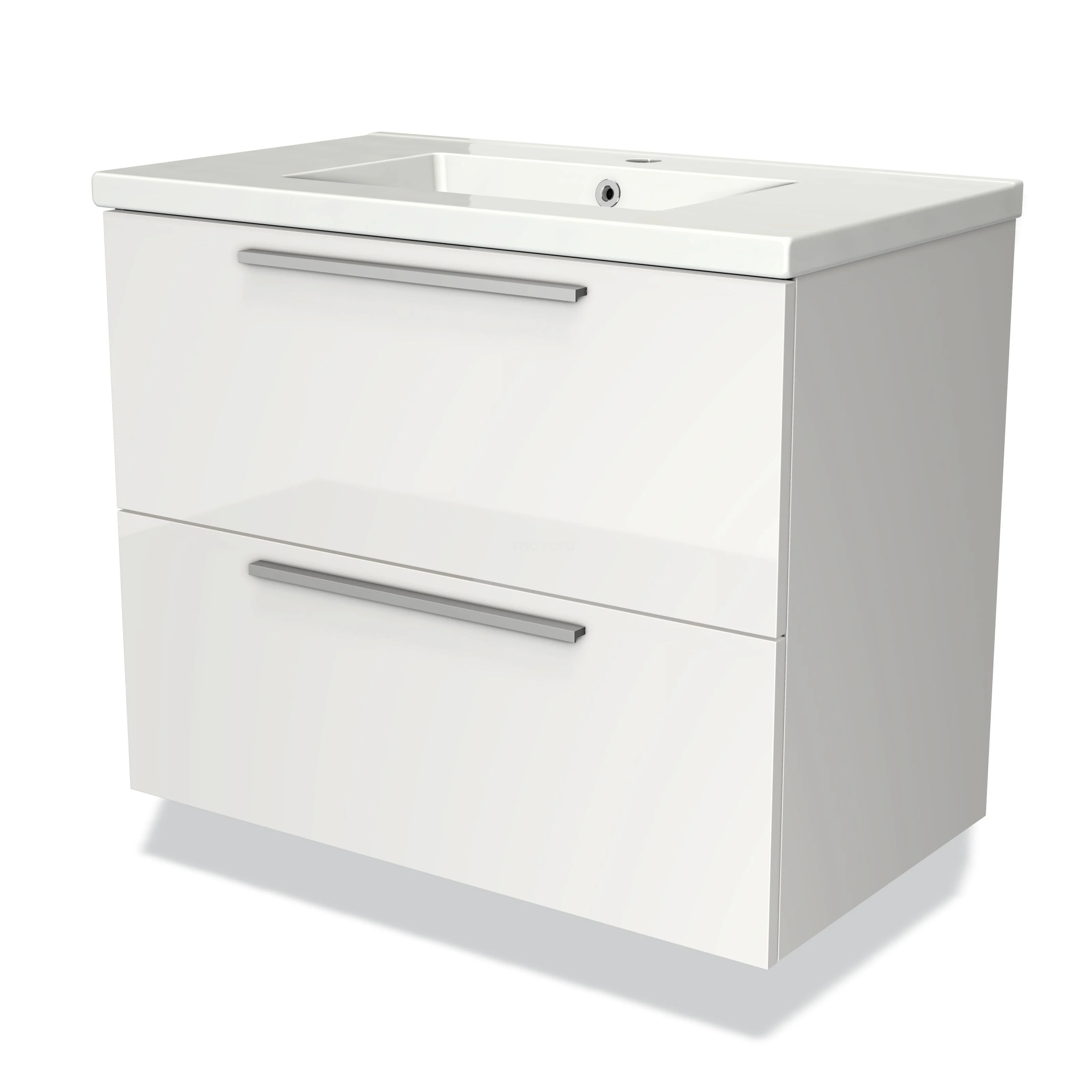 Modulo Bathroom furniture with sink | 80 cm High-gloss white Flat front Ceramic 2 Stacked drawers