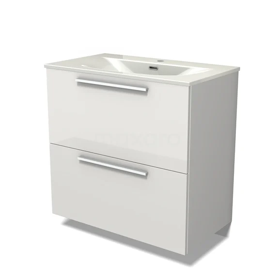 Modulo Bathroom furniture with sink | 80 cm High-gloss white Flat front Ceramic 2 stacked drawers under each other