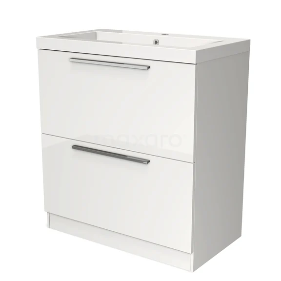 Stylish design The stylish design makes this bathroom unit the eye-catcher of your bathroom. The base cabinet features a flat front and has a high-gloss white finish. This colour has a modern appeal and gives the unit a fresh look and feel. In addition, the flat front provides a timeless touch. You need to add the handles yourself. These are available in different colours and shapes.