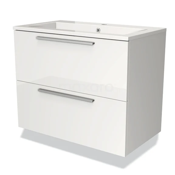 Stylish design The stylish design makes this bathroom unit the eye-catcher of your bathroom. The base cabinet features a flat front and has a high-gloss white finish. This colour has a modern appeal and gives the unit a fresh look and feel. In addition, the flat front provides a timeless touch. You need to add the handles yourself. These are available in different colours and shapes.