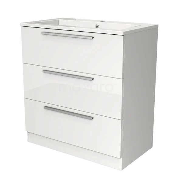 Modulo Bathroom furniture with sink | 80 cm High-gloss white Flat front Mineral marble 3 standing drawers
