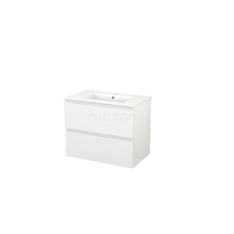 Modulo+ Bathroom furniture with sink | 80 cm High-gloss white Handle-less front Ceramic 2 Stacked drawers