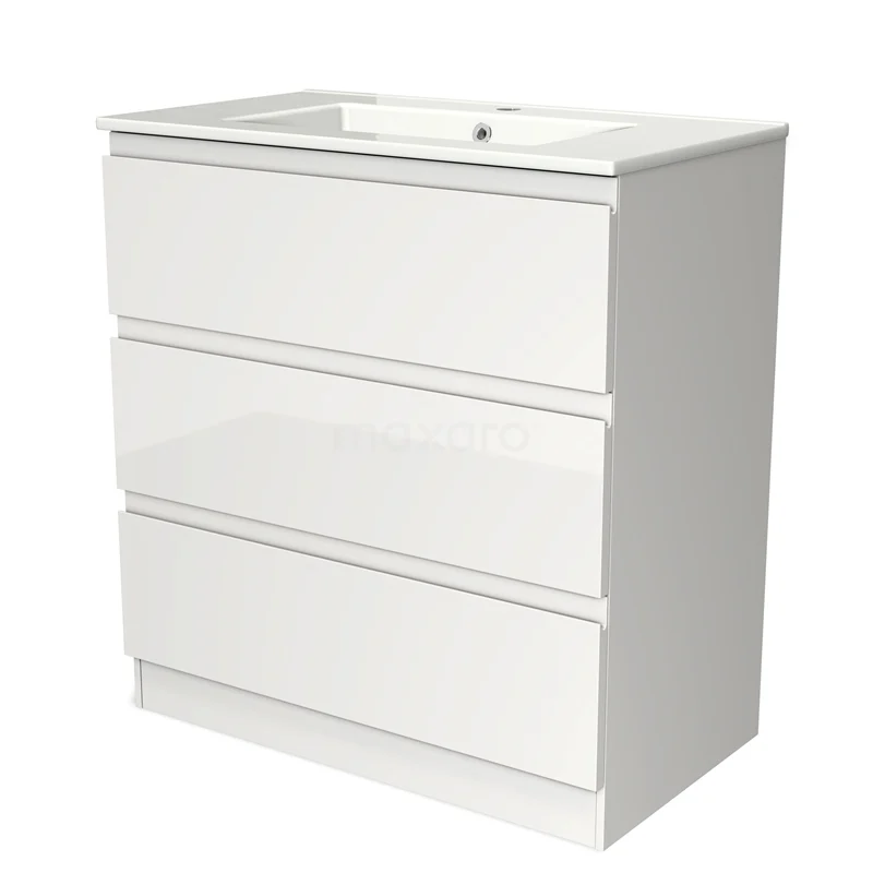 Modulo Bathroom furniture with sink | 80 cm High-gloss white Handle-less front Ceramic 3 standing drawers