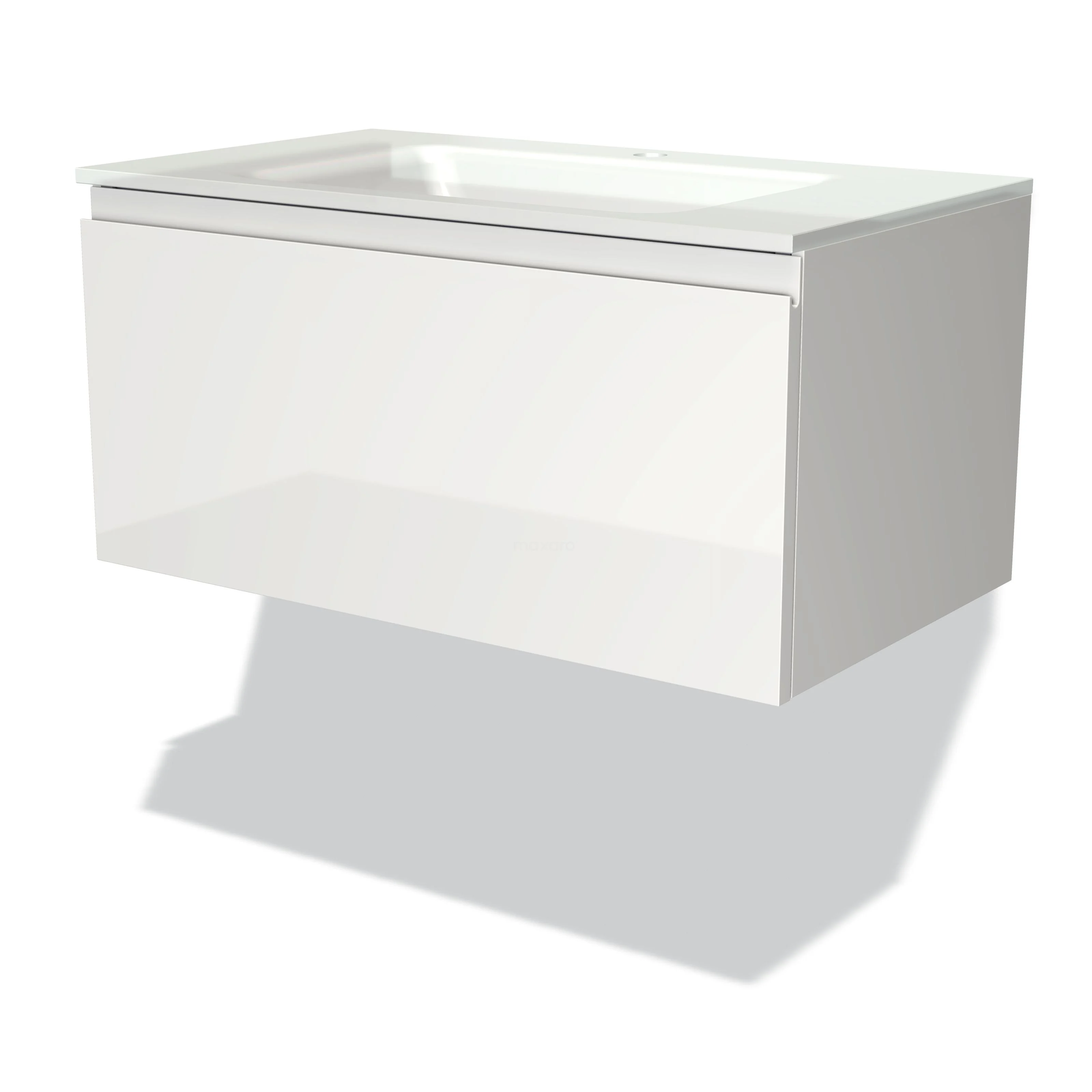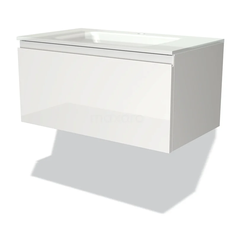 Modulo Bathroom furniture with sink | 80 cm High-gloss white Handle-less front Glass 1 drawer
