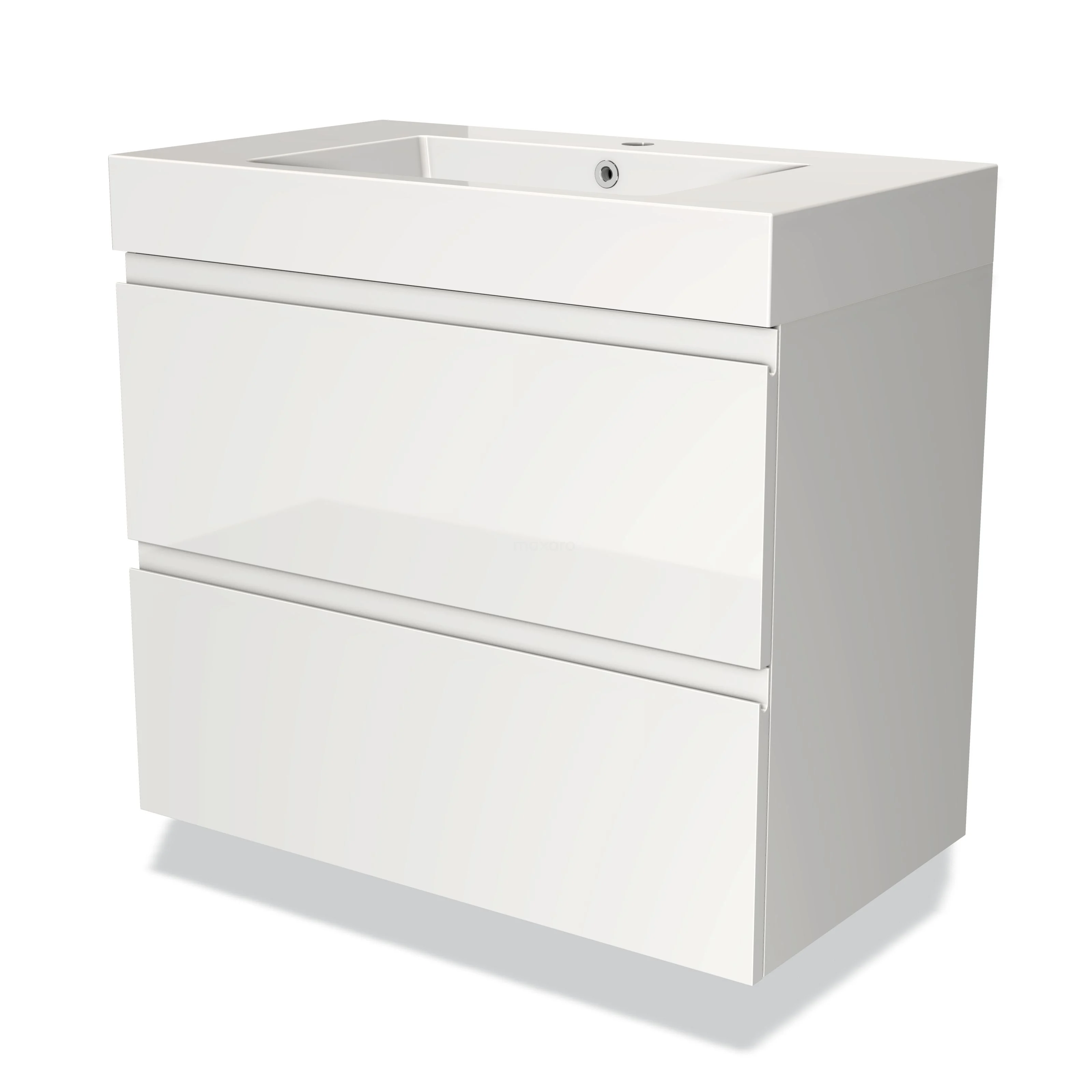 Modulo Bathroom furniture with sink | 80 cm High-gloss white Handle-less front Mineral marble 2 Stacked drawers