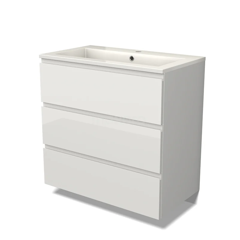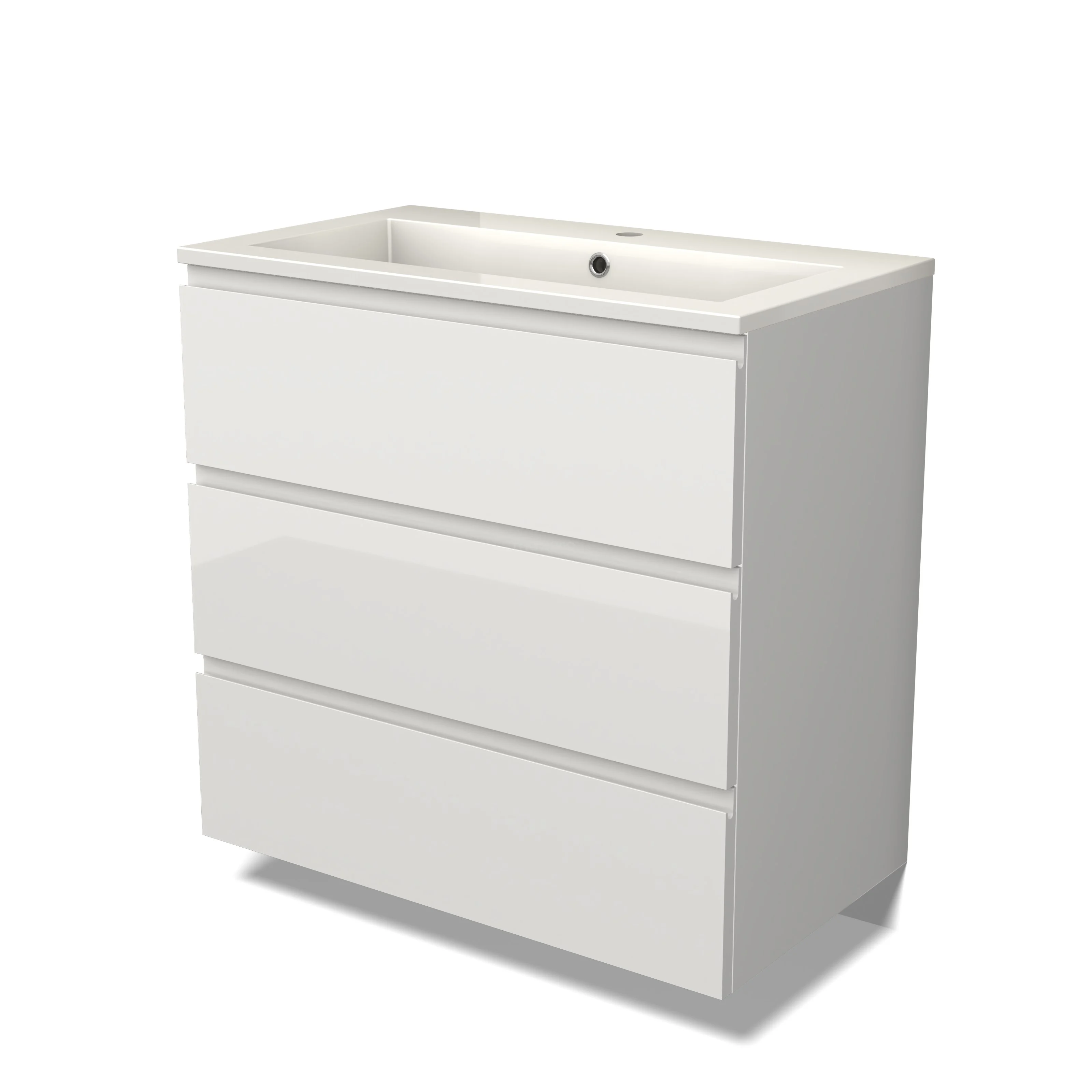 Modulo Bathroom furniture with sink | 80 cm High-gloss white Handle-less front Mineral marble 3 drawers