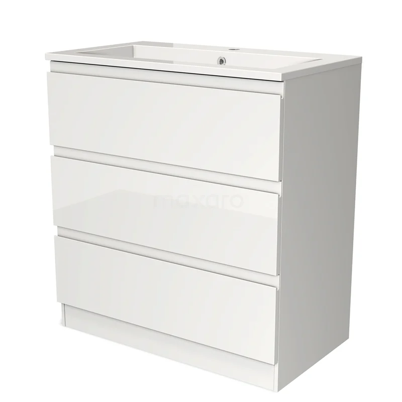 Modulo Bathroom furniture with sink | 80 cm High-gloss white Handle-less front Mineral marble 3 standing drawers