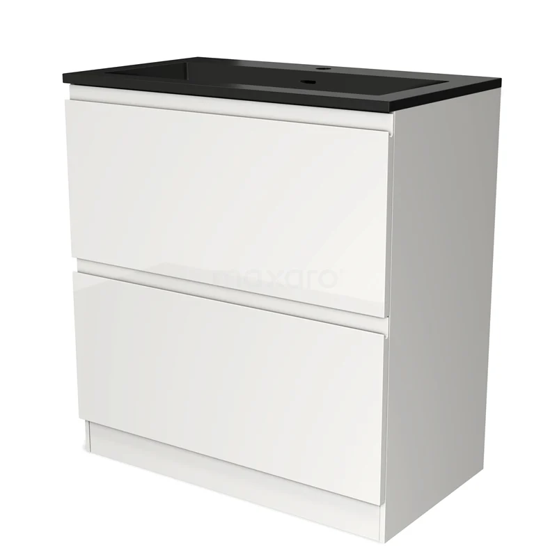 Modulo Bathroom furniture with sink | 80 cm High-gloss white Handle-less front Quartz 2 high drawers standing drawers under each other