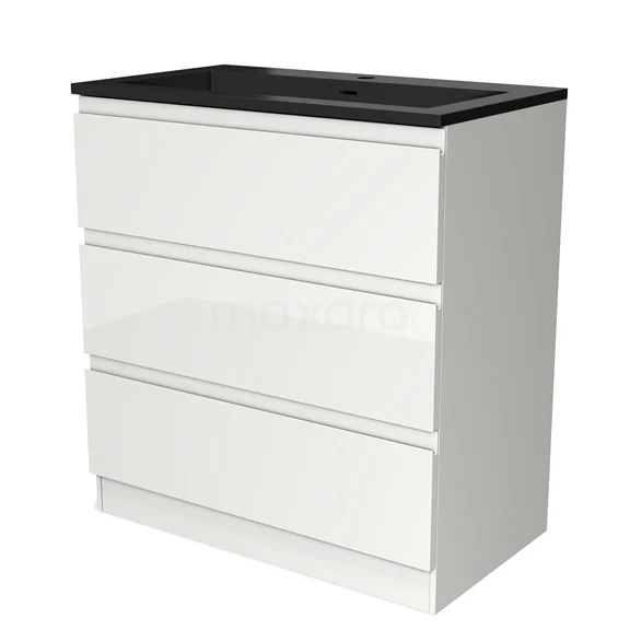 Modulo Bathroom furniture with sink | 80 cm High-gloss white Handle-less front Quartz 3 standing drawers