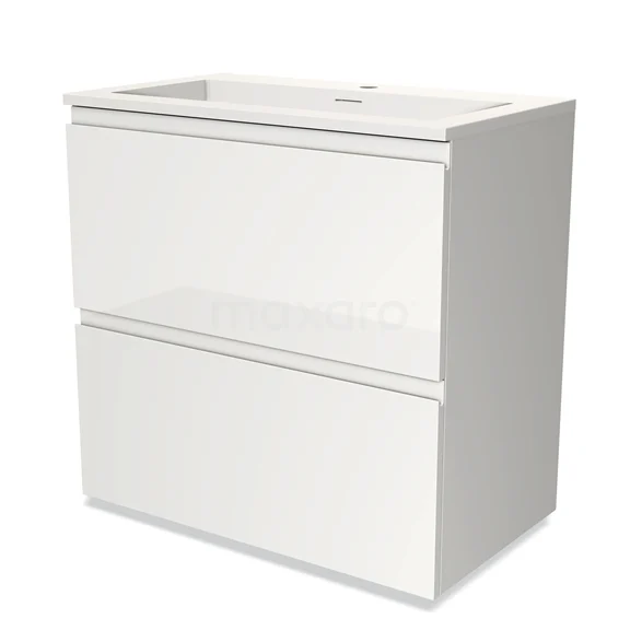 Modulo Bathroom furniture with sink | 80 cm High-gloss white Handle-less front Solid surface 2 stacked drawers under each other