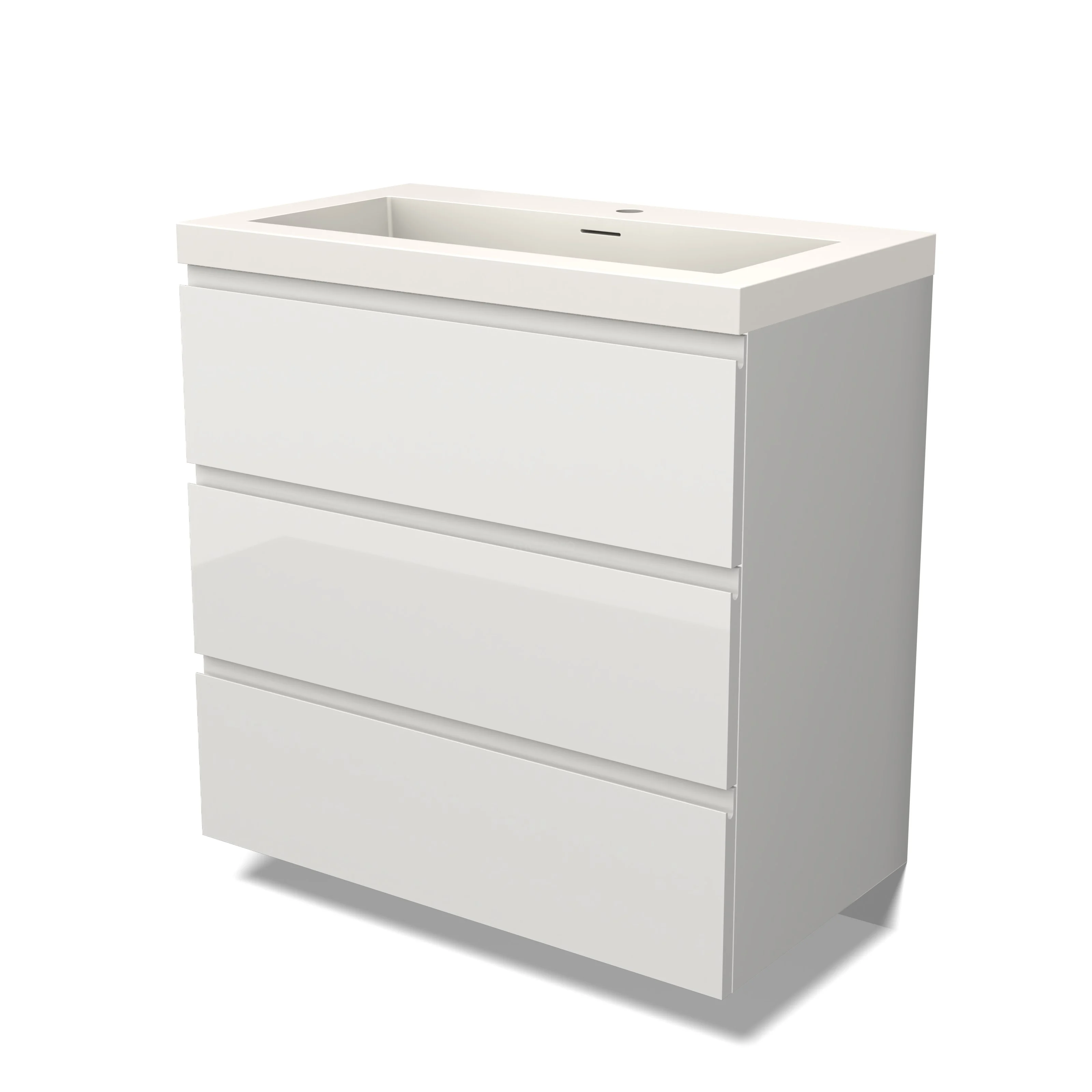 Modulo Bathroom furniture with sink | 80 cm High-gloss white Handle-less front Solid surface 3 drawers