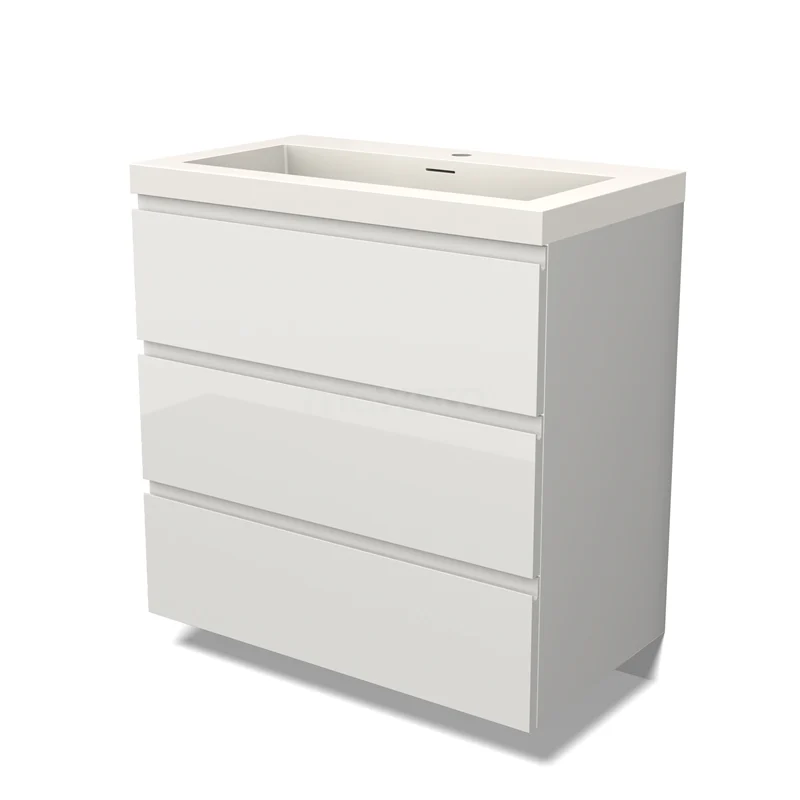 Stylish design The stylish design makes this bathroom unit the eye-catcher of your bathroom. The lower cabinet features a handleless front and has a high-gloss white finish. This colour has a modern appeal and gives the unit a fresh look and feel. In addition, the handleless front provides a sleek touch. nan...