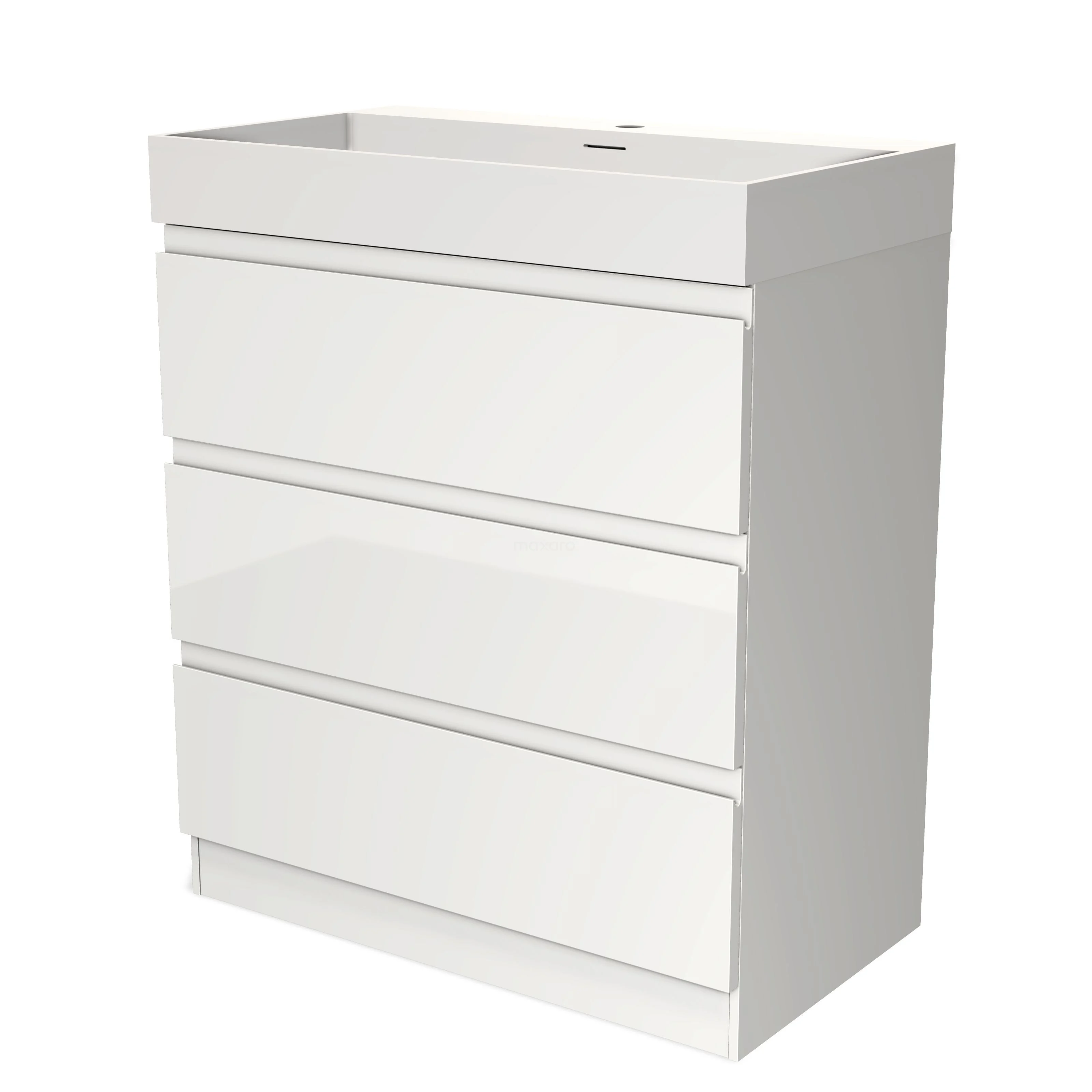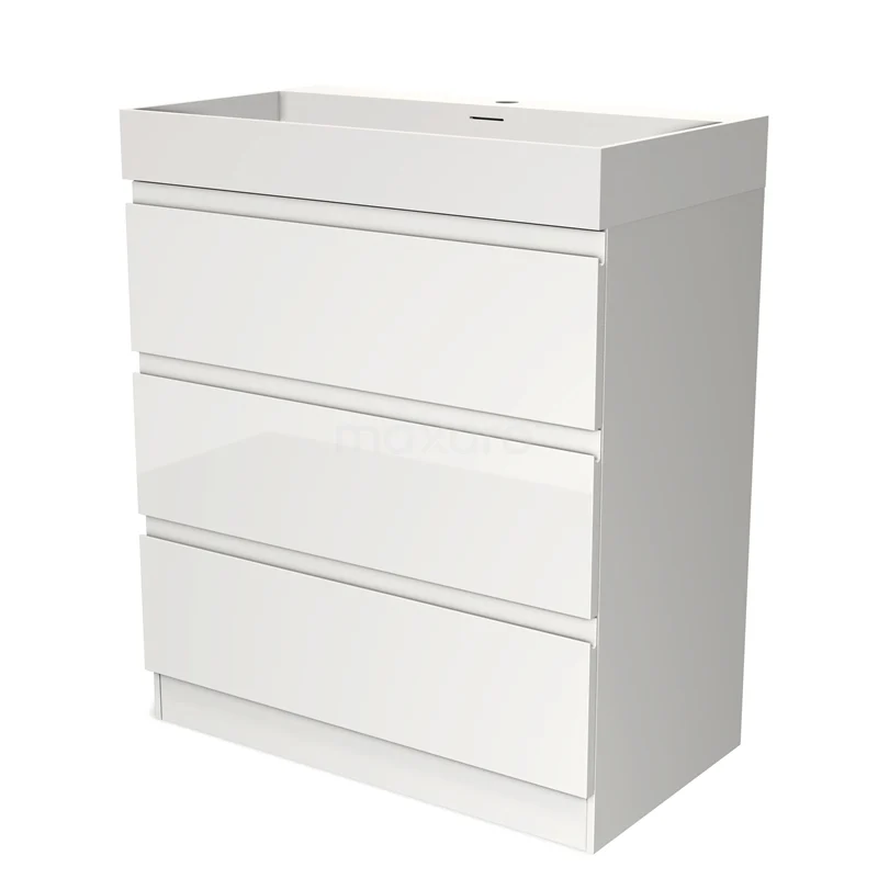 Modulo Bathroom furniture with sink | 80 cm High-gloss white Handle-less front Solid surface 3 standing drawers