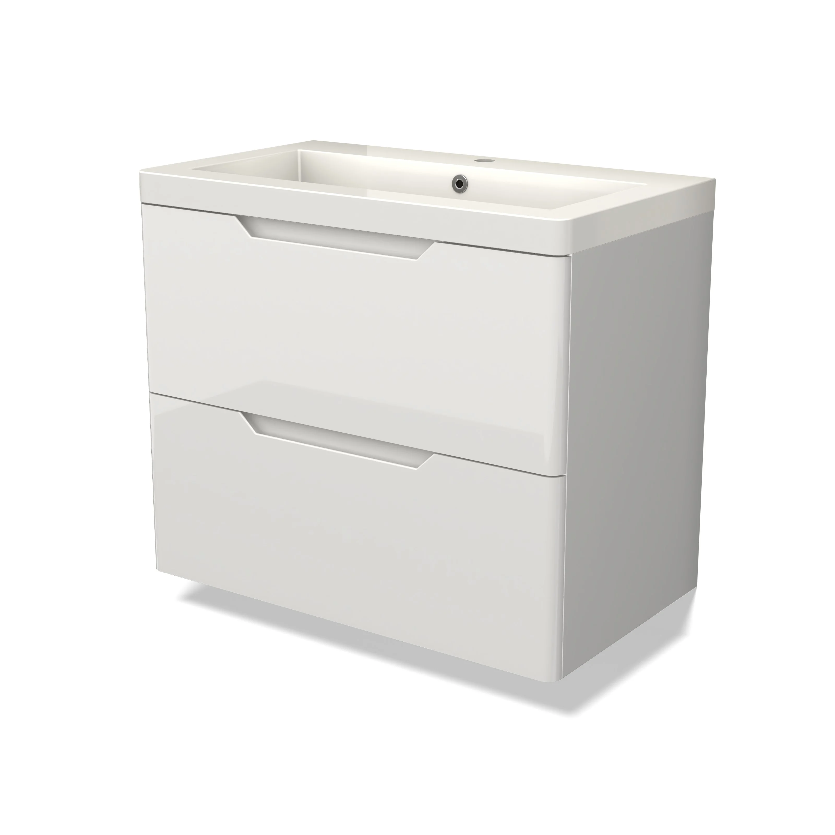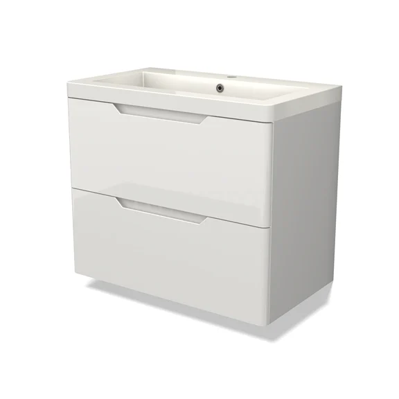 Modulo Bathroom furniture with sink | 80 cm High-gloss white Round front Mineral marble 2 Stacked drawers