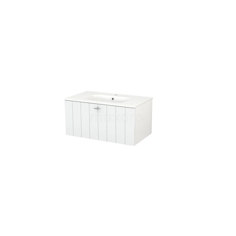 Modulo+ Bathroom furniture with sink | 80 cm High-gloss white Slat front Ceramic 1 drawer
