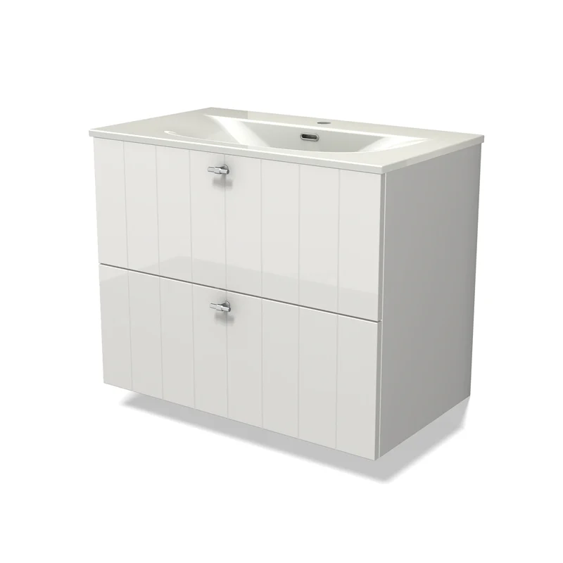 Modulo Bathroom furniture with sink | 80 cm High-gloss white Slat front Ceramic 2 Stacked drawers