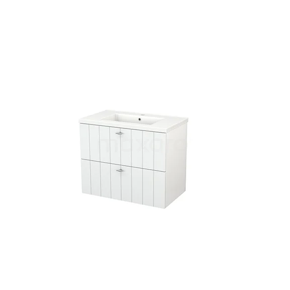 Modulo+ Bathroom furniture with sink | 80 cm High-gloss white Slat front Ceramic 2 Stacked drawers