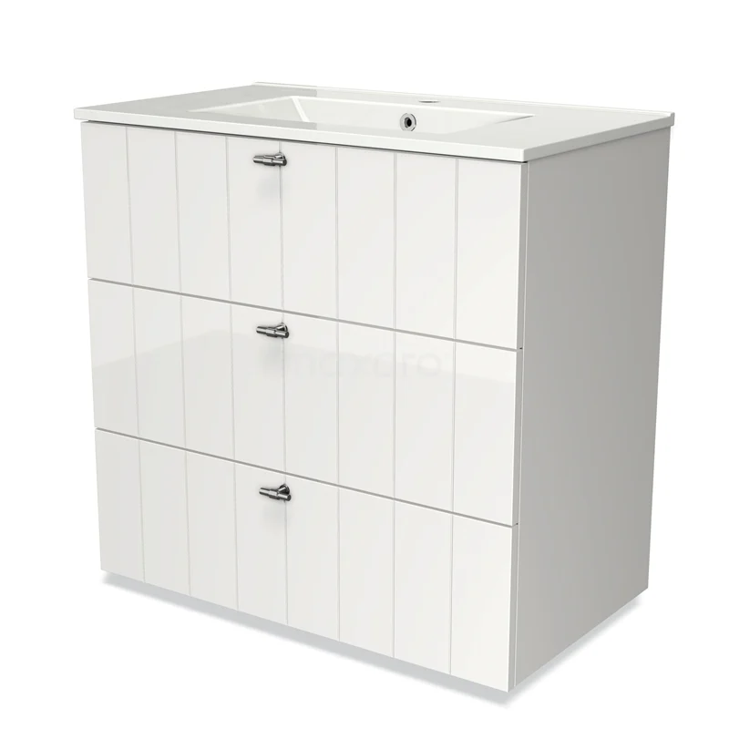 Modulo Bathroom furniture with sink | 80 cm High-gloss white Slat front Ceramic 3 drawers