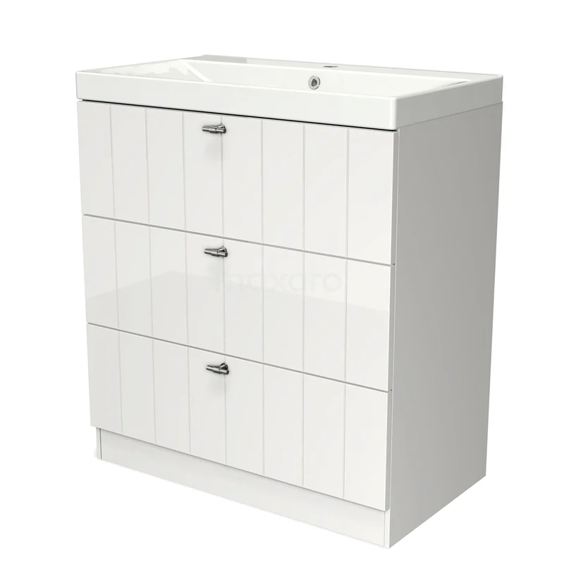 Modulo Bathroom furniture with sink | 80 cm High-gloss white Slat front Ceramic 3 standing drawers