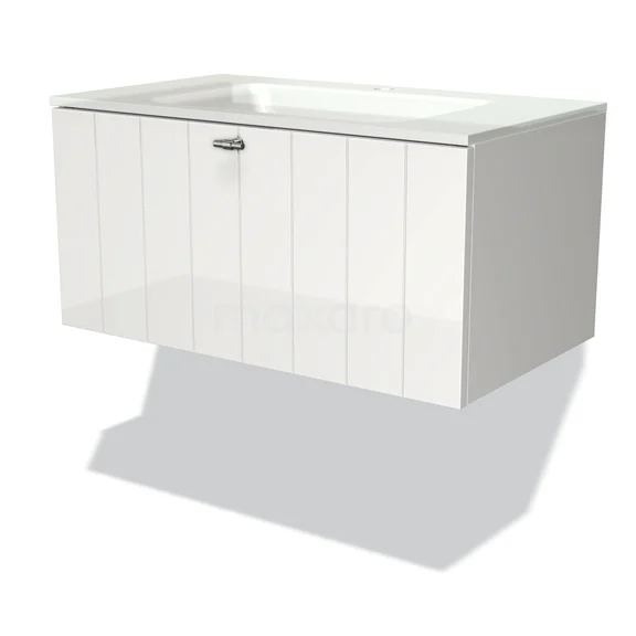 Modulo Bathroom furniture with sink | 80 cm High-gloss white Slat front Glass 1 drawer