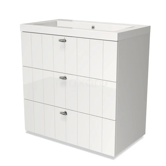 Modulo Bathroom furniture with sink | 80 cm High-gloss white Slat front Mineral marble 3 drawers
