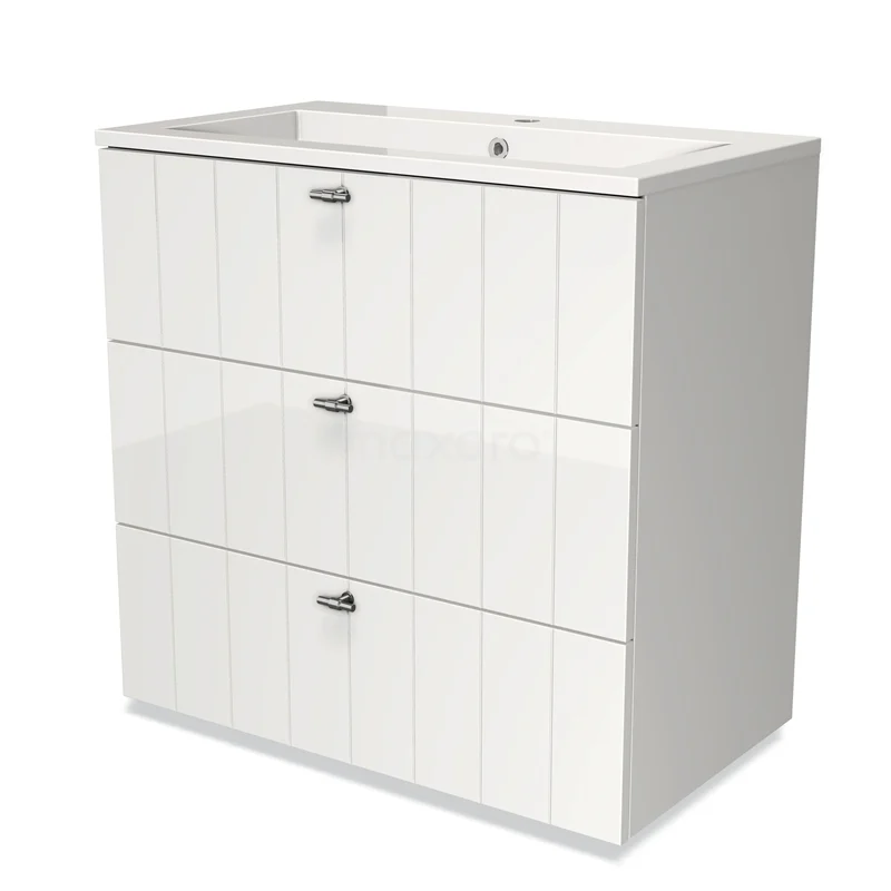 Modulo Bathroom furniture with sink | 80 cm High-gloss white Slat front Mineral marble 3 drawers