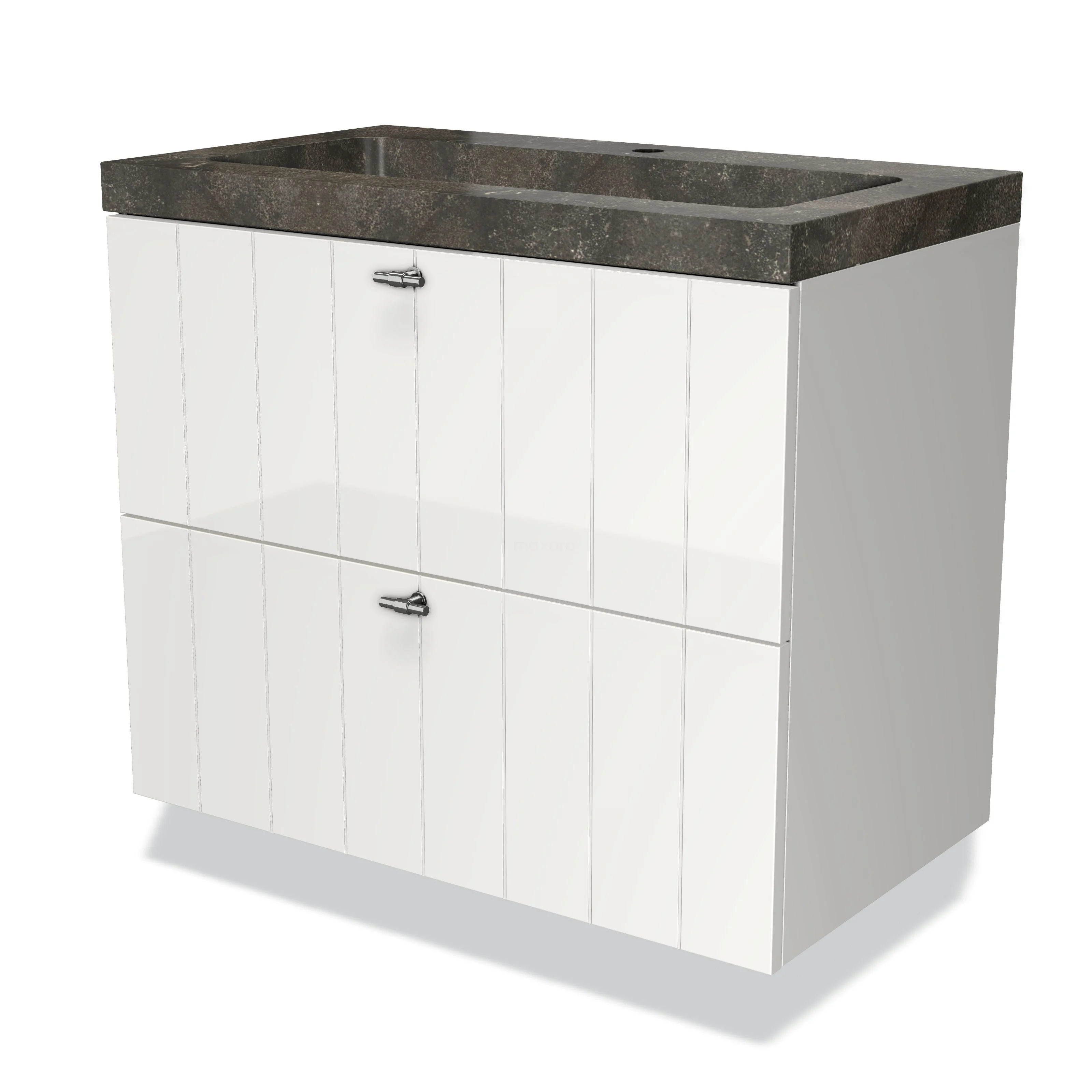 Modulo Bathroom furniture with sink | 80 cm High-gloss white Slat front Natural stone 2 Stacked drawers