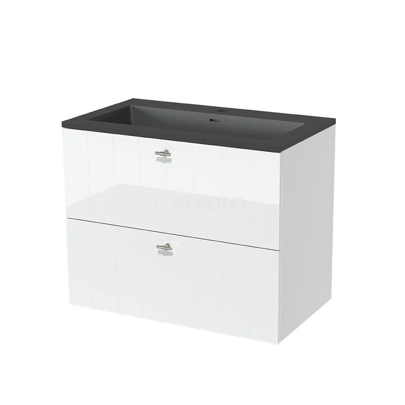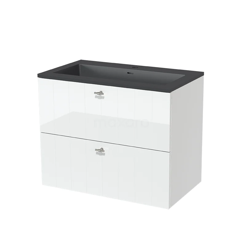 Modulo Bathroom furniture with sink | 80 cm High-gloss white Slat front Quartz 2 Stacked drawers