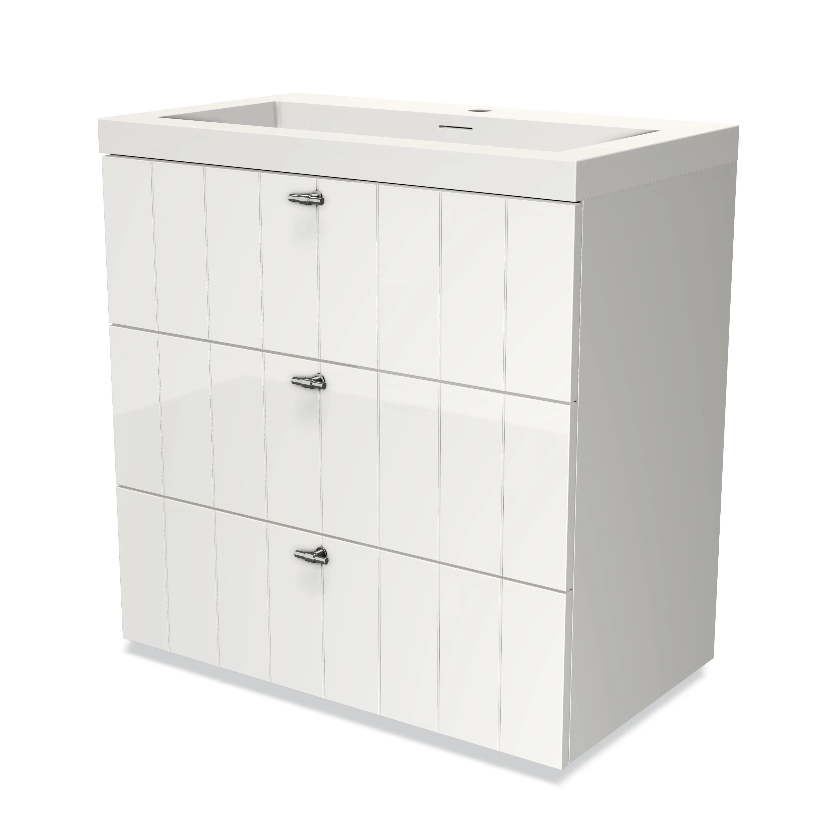 Modulo Bathroom furniture with sink | 80 cm High-gloss white Slat front Solid surface 3 drawers