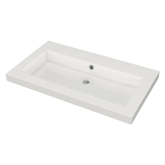 Mineral marble basin The Meza basin is finished in high-gloss white and comes into its own in any bathroom. This one is characterised by clean, straight lines. The basin is made of mineral marble, over which a gel coating has been applied for a beautiful shine. The materials are very easy to maintain. Scratches and dirt can easily be polished away.