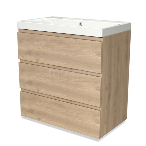 Modulo Bathroom furniture with sink | 80 cm Light brown oak Handle-less front Ceramic 3 drawers
