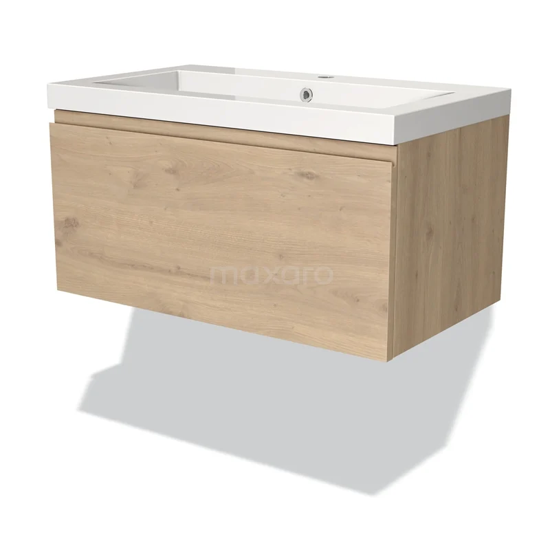 Modulo Bathroom furniture with sink | 80 cm Light brown oak Handle-less front Mineral marble 1 drawer