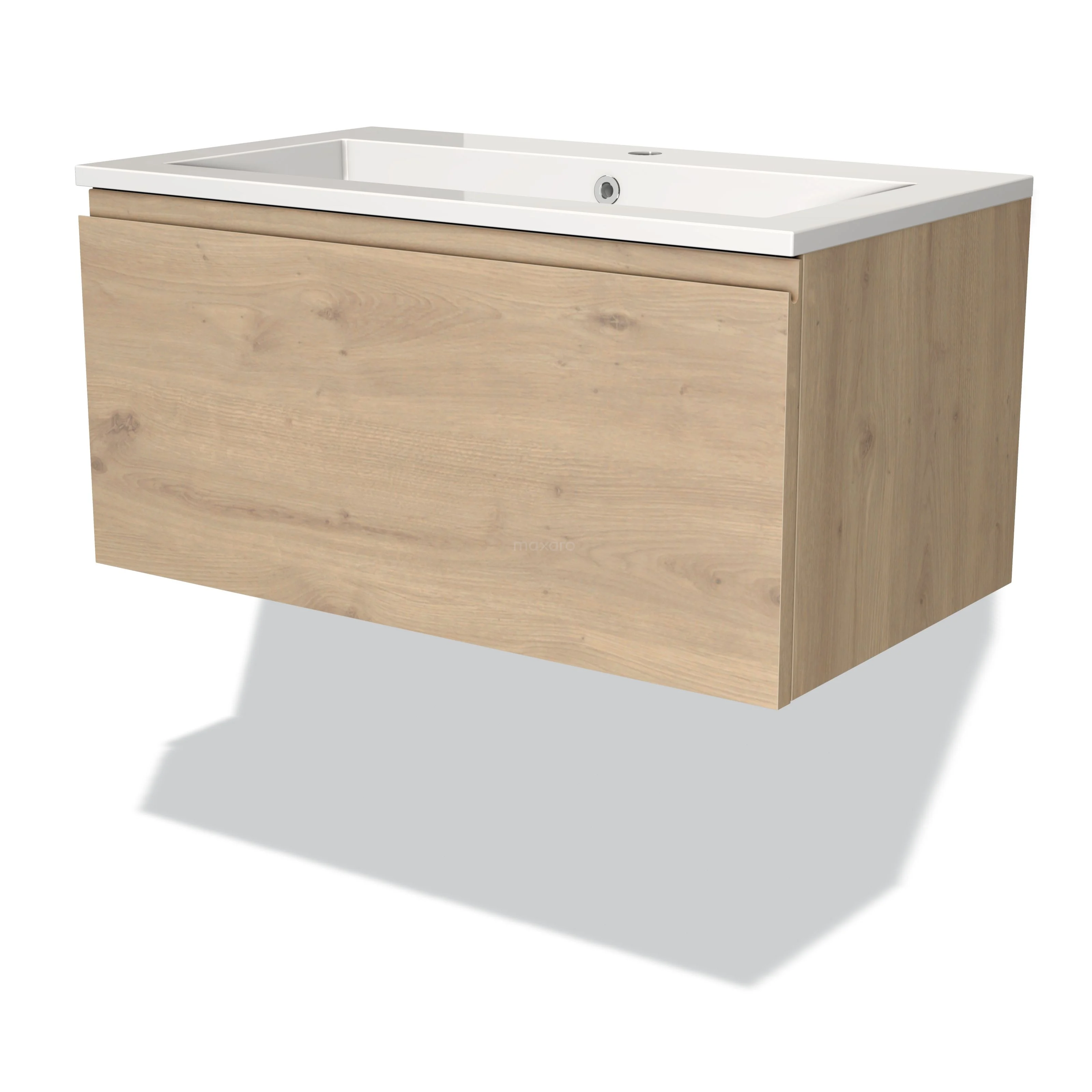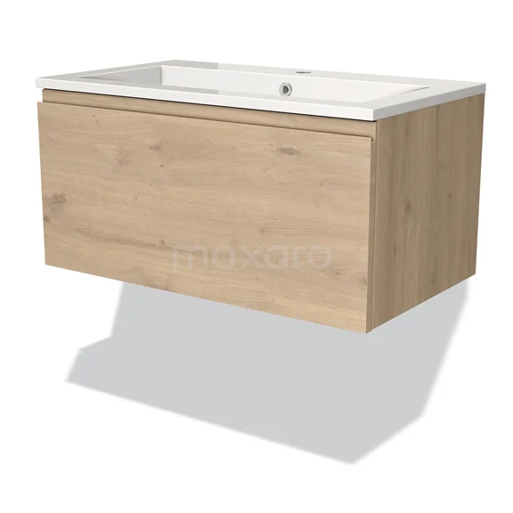 Modulo Bathroom furniture with sink | 80 cm Light brown oak Handle-less front Mineral marble 1 drawer