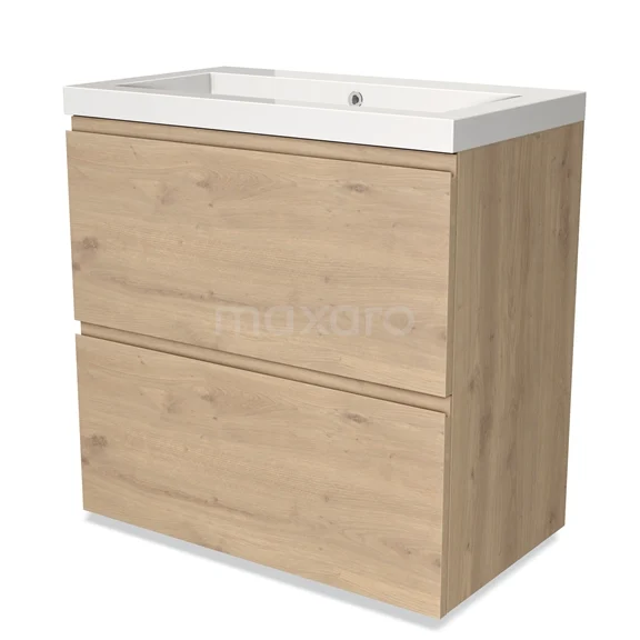 Modulo Bathroom furniture with sink | 80 cm Light brown oak Handle-less front Mineral marble 2 stacked drawers under each other