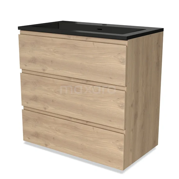 Modulo Bathroom furniture with sink | 80 cm Light brown oak Handle-less front Quartz 3 drawers